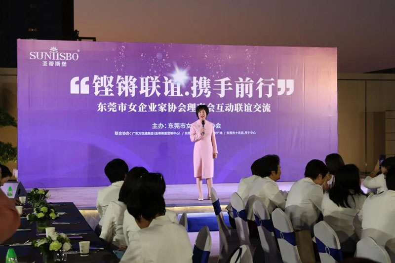 接下来,东莞市女企业家协会理事会会长叶小红女士上台发言,她表示非常感谢熊猫体育集团举办此次联谊交流会,同时,对我们的产品和企业文化给出了很高的评价。她号召东莞市女企业家协会以后要更多的举办此类交流联谊活动,以此增进会员企业之间的联系和了解,为未来进一步交流发展开创新局面!她希望我们能携手同行,强强联手,共赢未来,共创新辉煌!