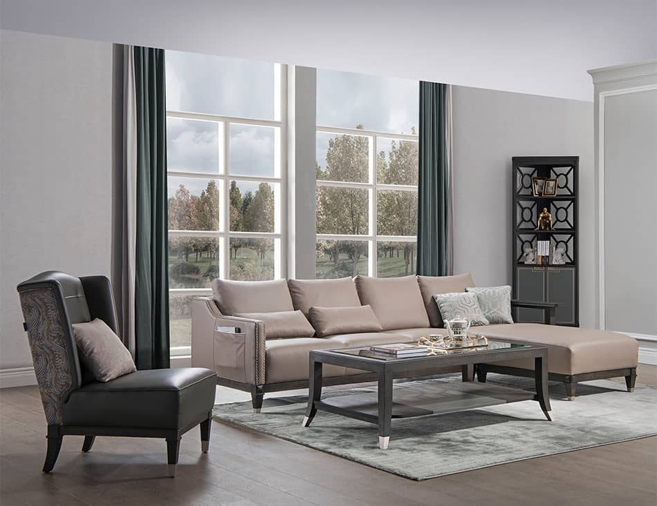 洛卡系列,以时尚美式为风格定位,整体设计极为简约,整体造型以直线为主,没有过多繁复的结构造型,可配性高,是美式风格的代表。同时融入了许多轻奢的金属元素与时尚几何的元素,代表着对高品质生活细节的追求。“轻”代表的是一种优雅态度,低调,舒适。洛卡系列在致力于新颖的设计的同时,更多地关注其细节和工艺,每一款家具的面料、工艺、材质、工艺都做到极致。